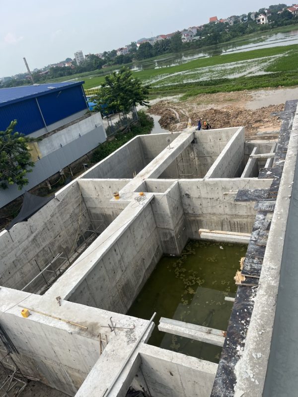 Trạm XLNT tập trung CCN Đoan Bái đến ngày 07/09/2023 đang trong công tác hoàn thiện bể; Đang tháo dỡ cốt pha và xây chát Nhà thiết bị.