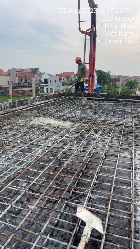 Trạm LNT tập trung CCN Đoan Bái đến ngày 22/08/2023 đang trong giai đoạn đổ Bê tông sàn tầng 2 nhà Cụm thiết bị