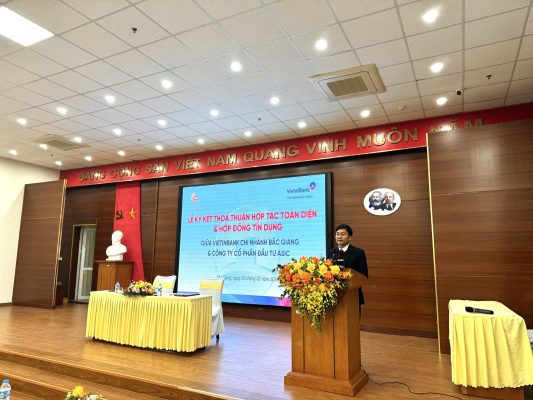Ngày 29/2/2024 tại thành phố Bắc Giang, Công ty cổ phần đầu tư ASIC và Ngân hàng TMCP công thương Việt Nam chi nhánh Bắc Giang đã tổ chức lễ ký kết thỏa thuận hợp tác toàn diện & hợp đồng tín dụng tài trợ Dự án Cụm công nghiệp Đoan Bái, huyện Hiệp Hòa, tỉnh Bắc Giang