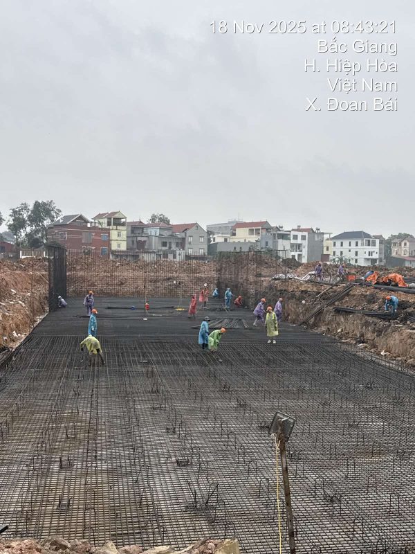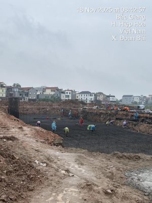 Công tác thi công Trạm XLNT tập trung Cụm công nghiệp Đoan Bái – Lương Phong 1 đến ngày 18/11/2025 đang trong giai đoạn lắp dựng thép.